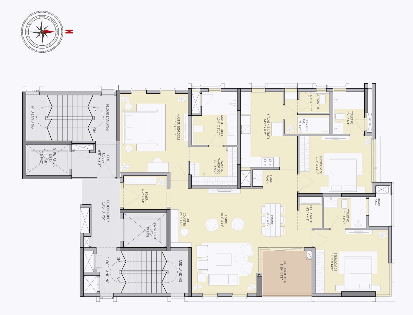 | 3 BHK | 2115 & 2570 Sq.Ft | ₹ 4.6 Cr* Onwards |